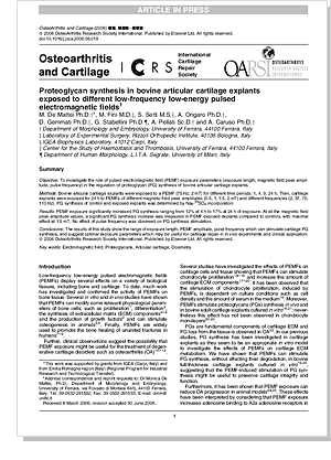 Conclusions: The results of this study show the range of exposure length, PEMF amplitude, pulse frequency which can stimulate cartilage PG synthesis, and suggest optimal exposure parameters which may be useful for cartilage repair in in vivo experiments and clinical application.
