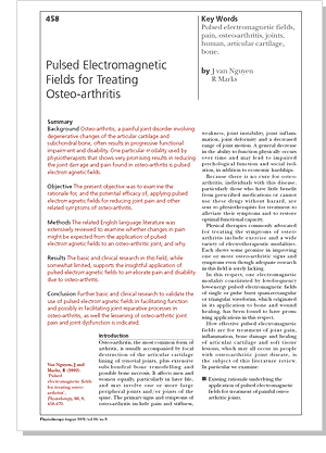 Results The basic and clinical research in this field, while somewhat limited, supports the insightful application of pulsed electromagnetic fields to ameliorate pain and disability due to osteo-arthritis.