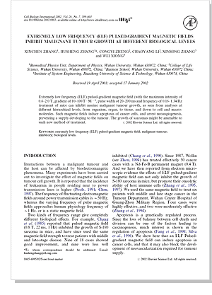 EXTREMELY LOW FREQUENCY (ELF) PULSED-GRADIENT MAGNETIC FIELDS INHIBIT MALIGNANT TUMOUR GROWTH AT DIFFERENT BIOLOGICAL LEVELS