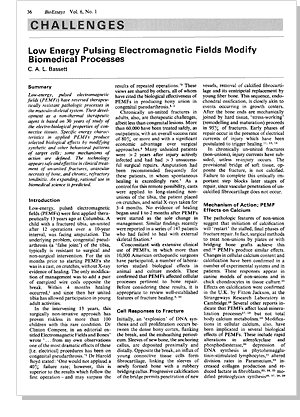 Low-energy, pulsed electromagnetic fields (PEMFs) have reversed therapeutically resistant pathologic processes in the musculo-skeletal system. Their development as a non-thermal therapeutic agent is based on 30 years of study of the electro-biological properties of connective tissues. Specific energy characteristics in applied PEMFs produce selected biological effects by modifying synthetic and other behavioral patterns of target cells; some mechanisms of action are defined. The technology appears safe and effective in